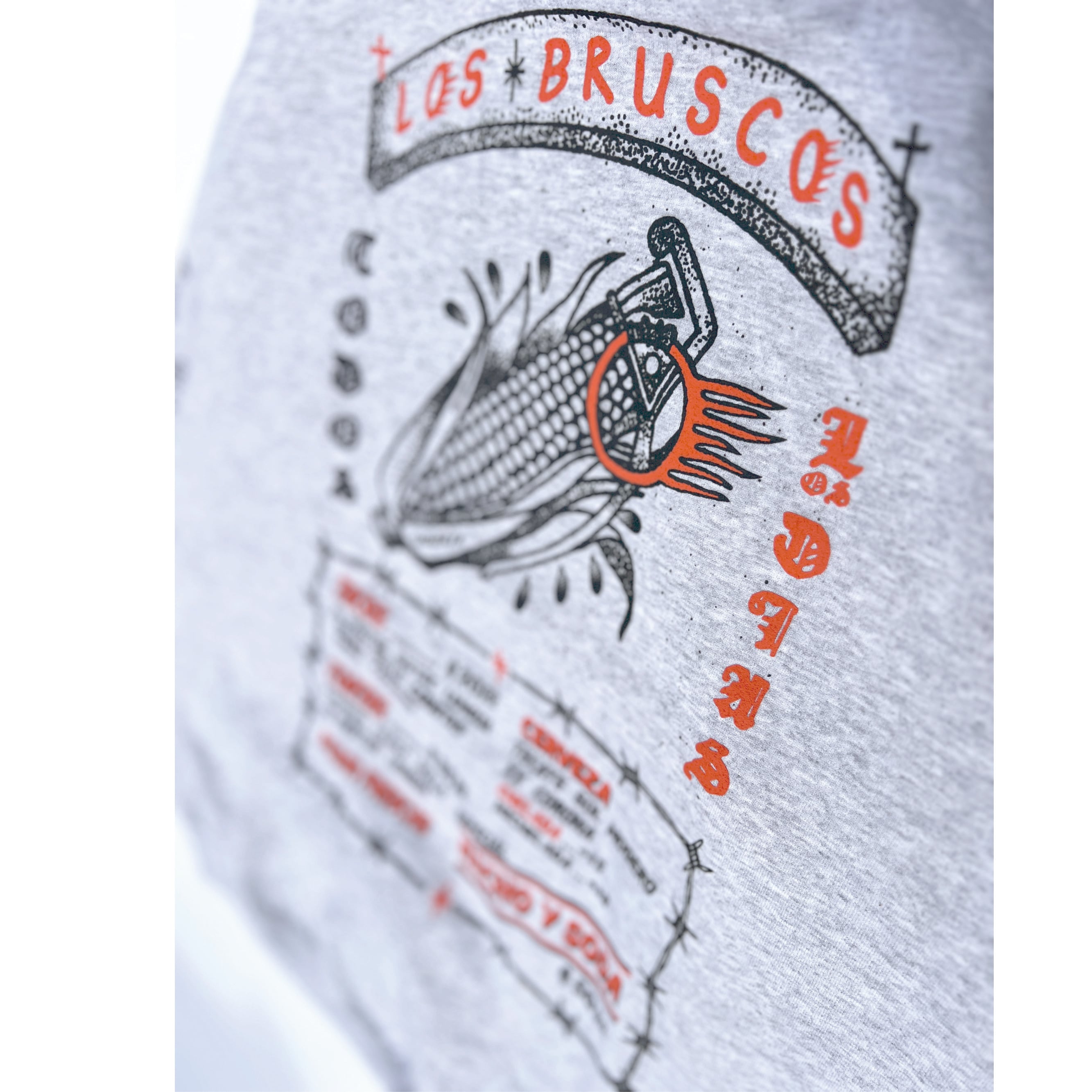 "BRUSCOS=荒っぽい,ラフ"をテーマに掲げコーンを手榴弾に見立てグレネードピンを付けてます。